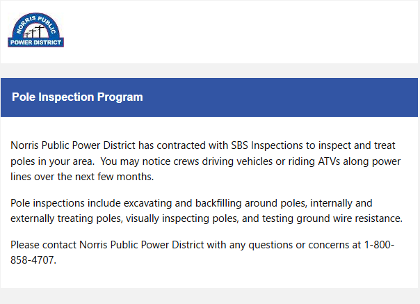 Norris has also contracted a company to trim trees out of their lines. You may also see them.