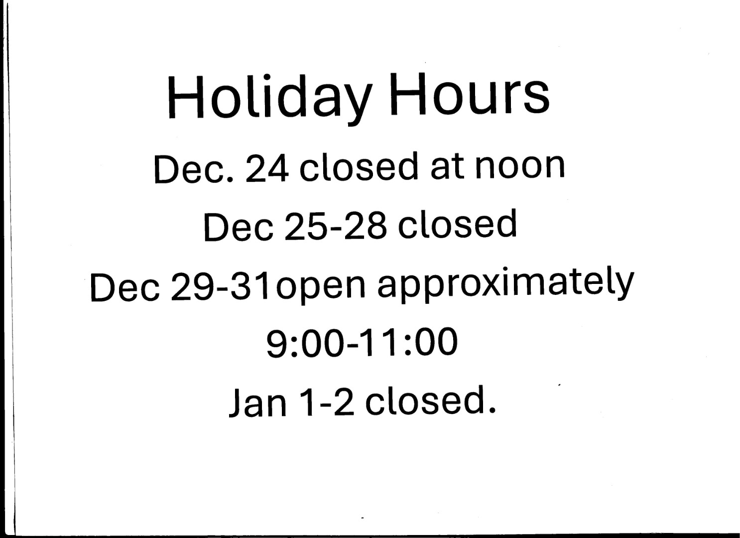 Holiday hours
